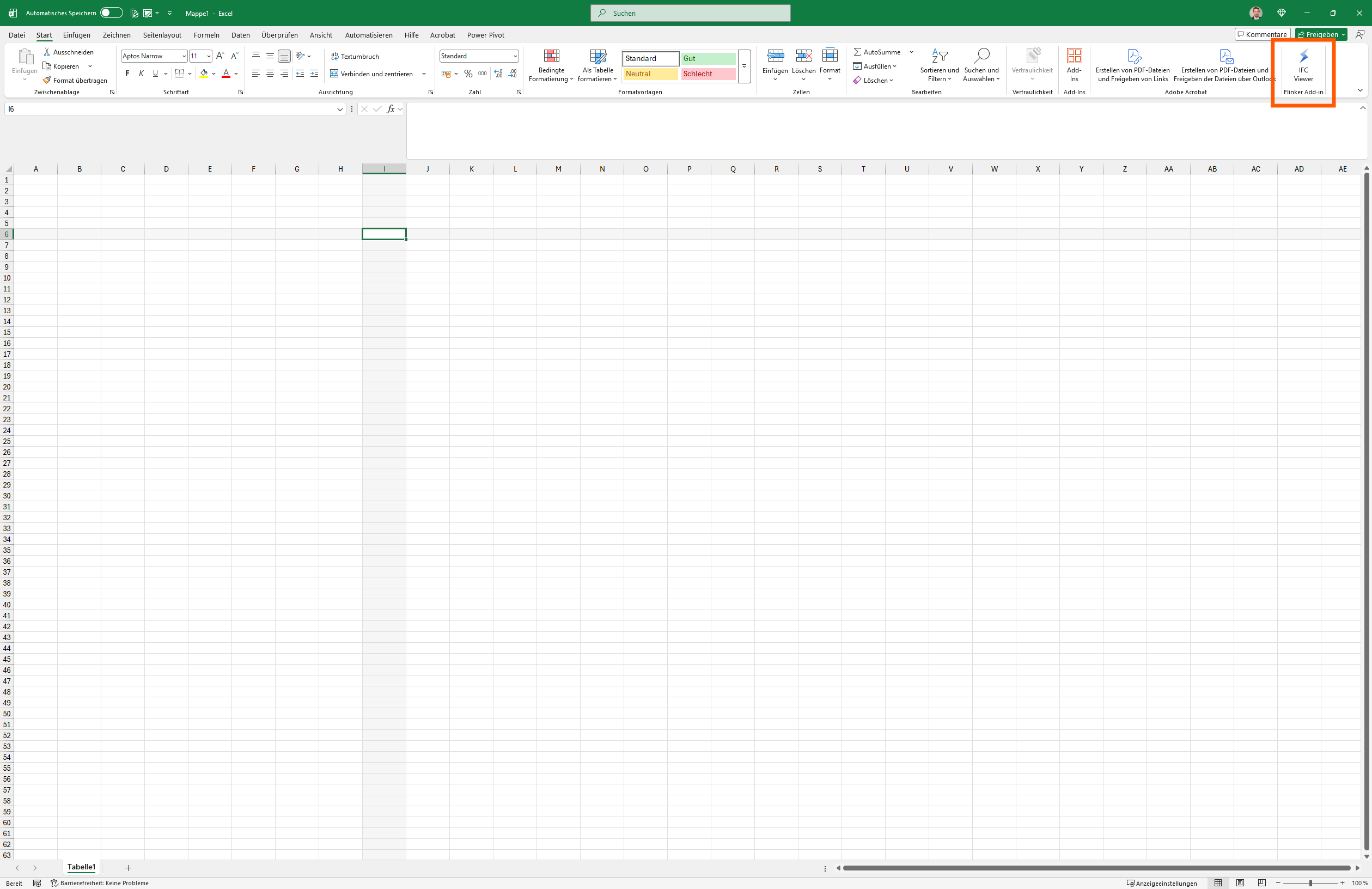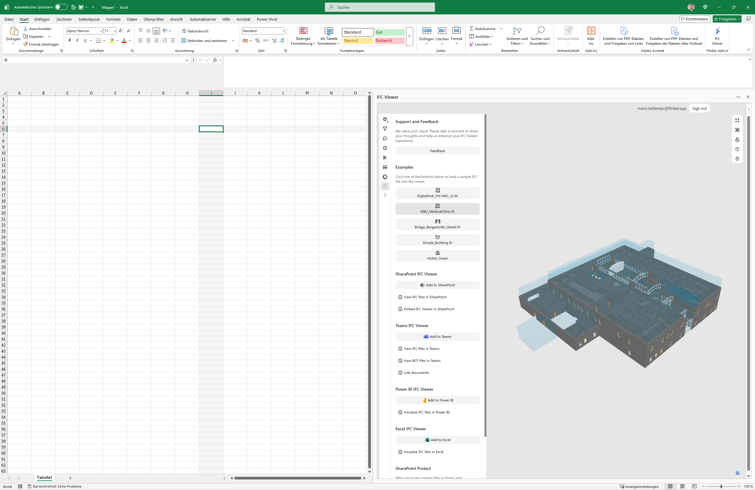 Open any Excel workbook and launch the Flinker IFC Viewer from the Add-In ribbon to get started.